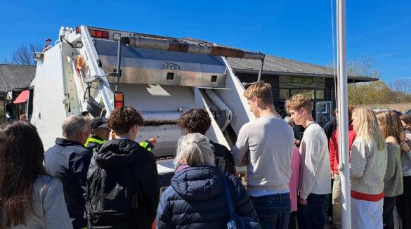Herefter så eleverne bl.a. hvordan sorteringen foregår i en skraldevogn.