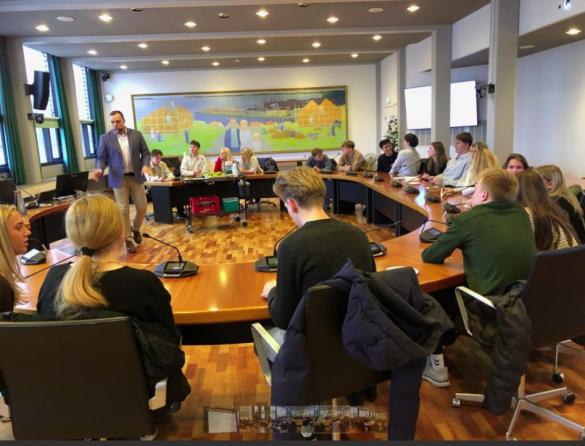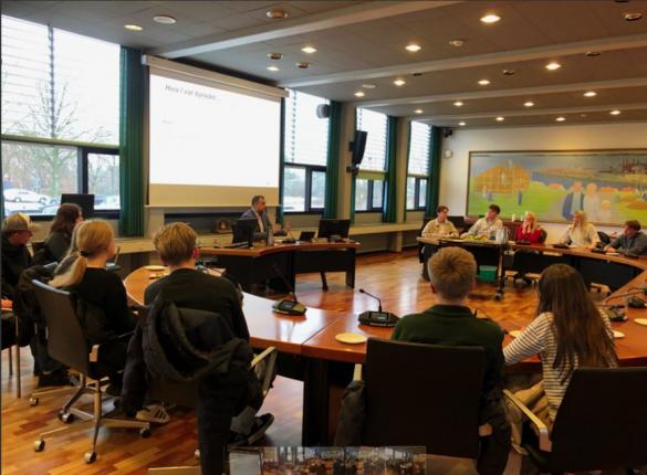 2z var den 17. december på Rådhuset som led et forløb i samfundsfag om kommunalvalg og velfærd. De blev først vist rundt blandt administrationen, og så gav borgmester Steffen Jensen et oplæg i byrådssalen om kommunens opgaver og byrådet. Eleverne blev delt op i 6 fantasifulde politiske partier blandt andet det røde nisseparti. De debatterede derefter og vedtog et fiktivt kommunalbudget på 10 millioner kr. Efter en intens debat styret af borgmesteren, hvor eleverne fik brugt mikrofonerne i salen, blev de enige om et kompromis, som det også sker i virkeligheden. Elevernes budget kom til at indeholde 6 millioner kroner til byudvikling men med en parentes om, at der også skal være aktiviteter til de unge. Derudover blev der givet 3 millioner til flere voksne i børnehaver og vuggestuer. Den sidste million gik til at starte med at give mere pleje til de ældre for at tilgodese de partier, der havde prioriteret den post. Besøget gav et levende indblik i byrådsarbejdet og det lokale demokrati, som eleverne satte stor pris på.