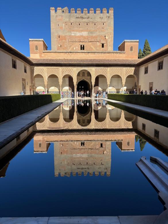 Her er hvad Peter skriver: Alt godt i Spanien! Søndag stod den på familiedag, hvor flere tog med deres familier til Middelhavet i 22 graders varme, mens Rie viste mig Granada, og vi hang ud med de spanske lærere. Mandag besøgte vi Alhambra, som jeg sender et par stemningsbilleder fra. Tirsdag står den på skolegang og flamenco.
