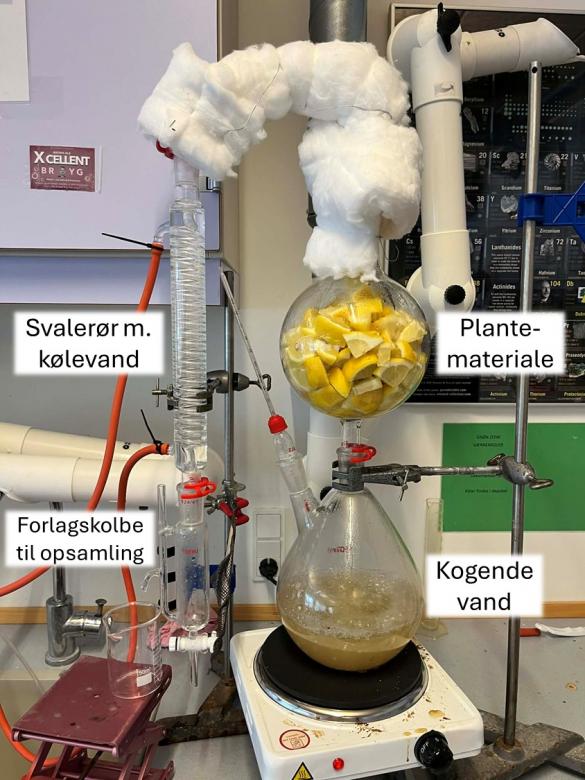 OPDATERING: Kemikerne i 2b har ekstraheret æteriske olier fra hhv. lavendel og citron. For en gangs skyld duftede der godt i kemilokalet. Nogen kemikere har valgt at tilsætte nogle få dråber æterisk olie til fugtighedscremen, som er vist i et tidligere opslag, så cremerne har fået en dejlig duft af lavendel eller citron. Andre har i stedet valgt at bevare cremen parfumefri.