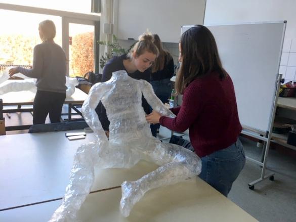 Billedkunsteleverne har lavet tapeafstøbninger af kroppe og kropsdele