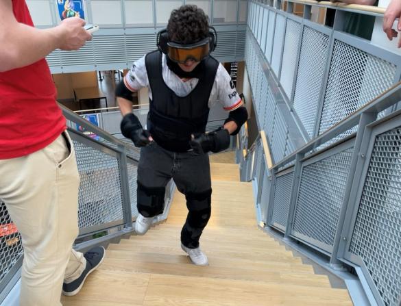 Ved fysioterapi og sygepleje fik eleverne et stort indblik i undervisningen. De prøvede bl.a. forskellige tests af reaktionsevne, styrke, balance, iltmætning og den klassiske sidde-rejse-test. Marco fik endda lov at prøve, hvordan det kan føles for en 60+ årig med ekstra vægt på kroppen, stivere led, begrænset synsfelt via specialbriller og høreværn, der simulerede nedsat hørelse.
