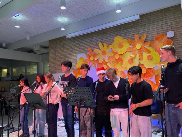 Der var julemusikskahoot over Teams og skolens højtaleranlæg - her var det 1p der vandt. Vi sluttede af i kantinen, hvor musikholdene optrådte med dejlig julemusik og fællessang.