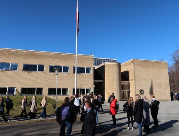 Torsdag d. 28. oktober havde vi på FVGH fint besøg af Statsminister Mette Frederiksen med følge. Hun ønskede at tale om klima med eleverne og havde afsat en god halv time hos os. Alle elever var samlet i kantinen og havde forberedt en masse højaktuelle klima-spørgsmål. Statsministeren indledte med at takke eleverne for at være en meget klimabevidst generation og sluttede af med at rose dem for de mange gode og interessante spørgsmål. Pressen var mødt talstærkt op og udenfor stod Ekstra Bladet klar med spørgsmål om nogle sms'er. Der blev lige tid til selfies, inden ministerbilen kørte afsted igen.