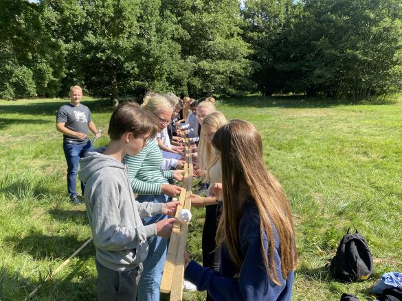 D. 11/8 2021 var skolens 162 1.års-elever en tur i skoven omkring Asserbo Slotsruin og lave ryste-sammen teambuildingøvelser.