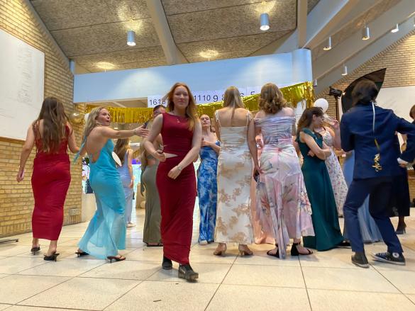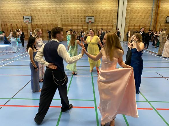 Alle var trukket i deres flotteste outfits og stemningen var i top allerede fra starten. Der blev danset les lanciers i hallen, mens pårørende så beundrende til. Så var der lækker middag i kantinen for afgangseleverne med nomineringer. Der kom gang i floor da både DJ og Emil Stabil fyrede den af. Tak for en superfed gallafest!