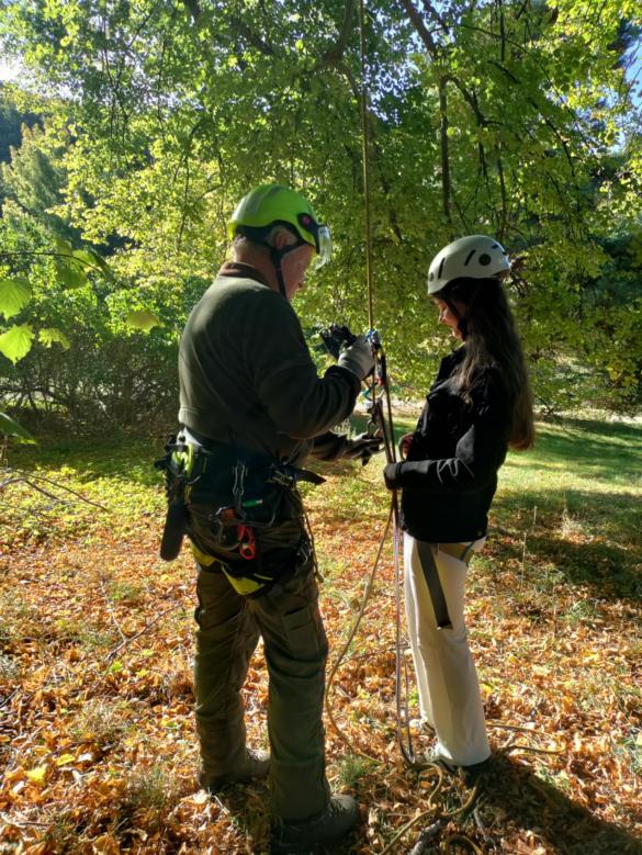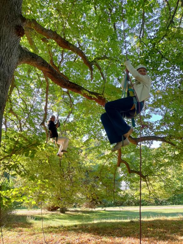 Trætopklatre-arrangement i det fineste efterårsvejr i Arresødal park i tirsdags. Arrangementet blev afholdt af kommunen og et par dygtige trætopklatreinstruktører.